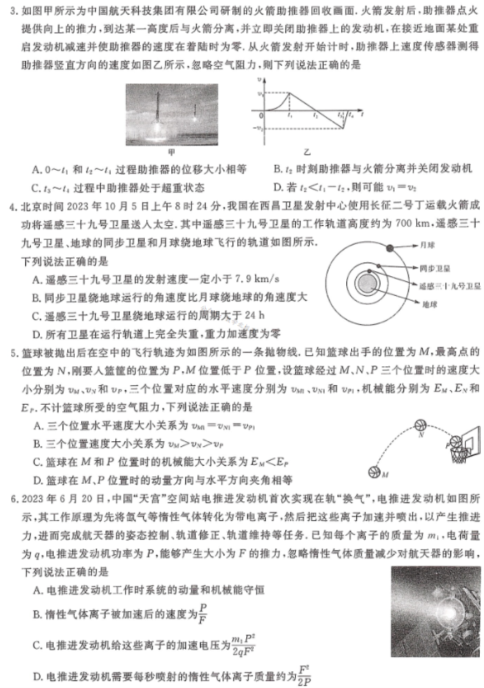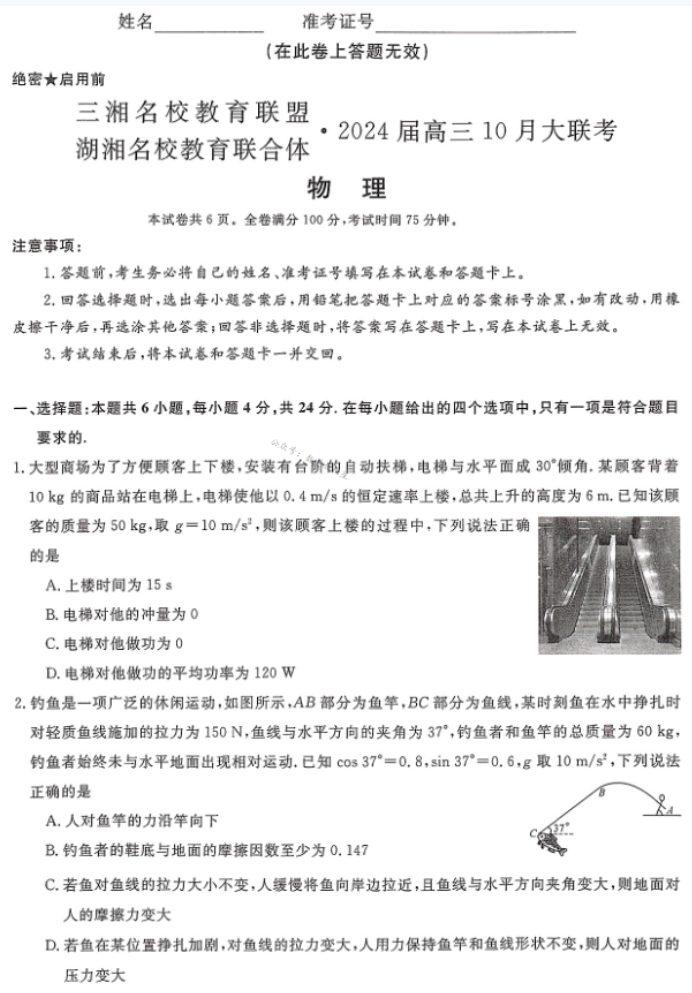 湖南天壹名校聯(lián)盟2024高三10月大聯(lián)考物理試題及答案解析
