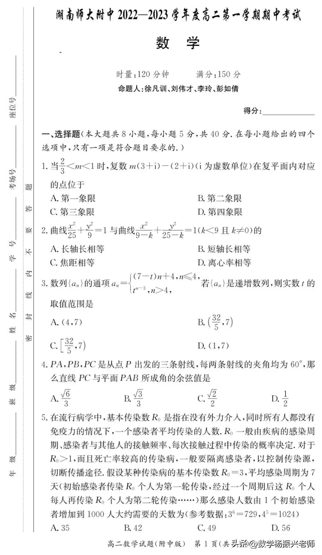 湖南師大附中答案貼吧(湖南師大附中2022-2023學(xué)年第一學(xué)期高二期中考試數(shù)學(xué)試卷及答案)